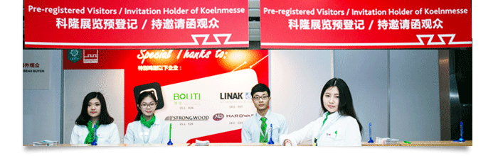 请您携带名片以及预登记确认函 / 观众邀请函到展馆 B区、C区观众登记中心 办理参观证,请认准“科隆展览预登记 / 持邀请函观众”柜台。